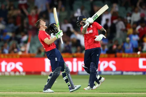 இந்த ஜோடியின் அதிரடியால் இங்கிலாந்து அணி 10 ஓவர்கள் முடிவில் விக்கெட் இழப்பின்றி 98 ஓட்டங்களை குவித்தது. ஹேல்ஸை தொடர்ந்து கப்டன் பட்லர் 36 பந்துகளில் அரைசதம் கடந்தார். இந்த ஜோடி 13.5 ஓவர்களில் 150 ஓட்டங்கள் கடந்தனர். இறுதியில் இங்கிலாந்து அணி 16 ஓவர்களில் 170 ஓட்டங்கள் அடித்து 10 விக்கெட்டுகள் வித்தியாசத்தில் அபார வெற்றி பெற்று இறுதி போட்டிக்கு தகுதி பெற்றது. அலெக்ஸ் ஹேல்ஸ் 86 ஓட்டங்களுடனும் (47 பந்துகள்) , ஜோஸ் பட்லர் 80 ஓட்டங்களுடனும் (49 பந்துகள்) இறுதிவரை ஆட்டமிழக்காமல் இருந்தனர். இந்திய அணி தோல்வி அடைந்து வெளியேறியுள்ளதால் இந்திய ரசிகர்கள் மிகுந்த சோகத்தில் ஆழ்ந்துள்ளனர். நவம்பர் 13 அன்று நடைபெறும் இறுதி போட்டியில் பாகிஸ்தான்- இங்கிலாந்து அணிகள் மோதுகின்றன.