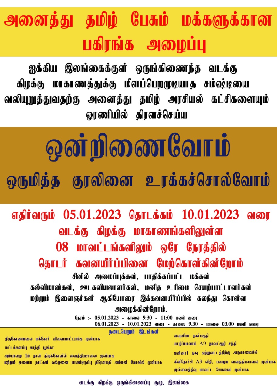 அனைத்து தமிழ் பேசும் மக்களுக்கான பகிரங்க அழைப்பு.