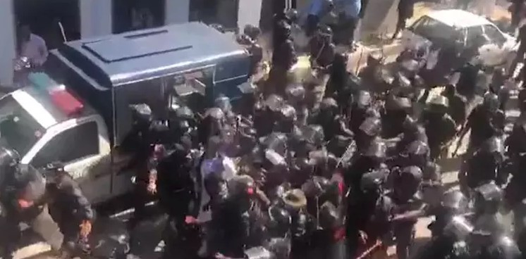 கோர்ட்டில் கண்ணாடி ஜன்னலை உடைத்துக்கொண்டு உள்ளே நுழைந்து துணை ராணுவத்தினர் இம்ரான்கானை கைது செய்ததாக அவரது கட்சியின் மூத்த தலைவர் ஷிரீன் மஜாரி தெரிவித்தார். இம்ரான்கானின் சட்டை காலரைப் பிடித்து இழுத்து, குண்டுக்கட்டாக தூக்கி சிறை வாகனத்தில் போட்டதைக் காட்டும் காட்சிகள் டி.வி. சேனல்களில் வெளியாகி பரபரப்பை ஏற்படுத்தின.