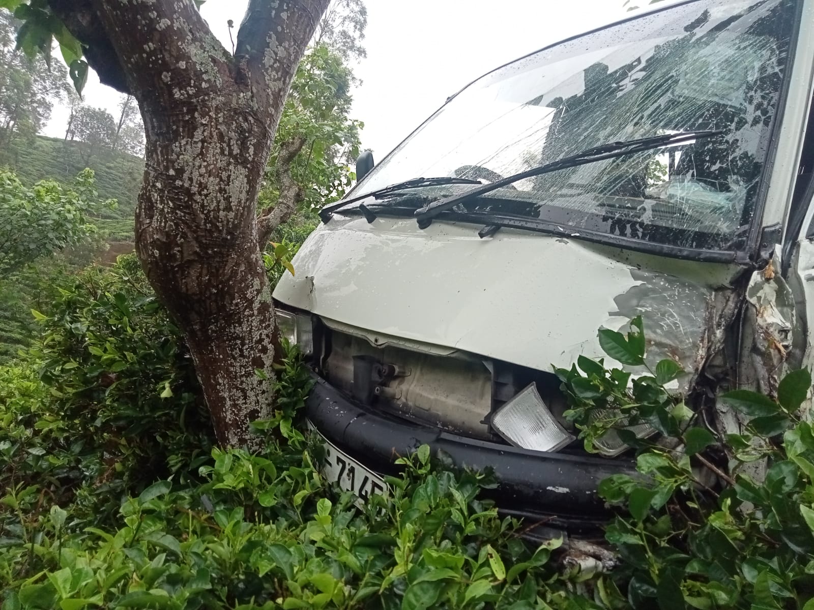 கொழும்பிலிருந்து நுவரெலியா சென்றுவிட்டு மீண்டும் கொழும்பு நோக்கி செல்லும் வழியிலேயே குறித்த வேன் பாதையை விட்டு விலகி வீதியோரத்தில் இருந்த மரம் ஒன்றில் மோதி நேற்றிரவு புதன்கிழமை 11 மணியளவில் விபத்துக்குள்ளாகியுள்ளது.