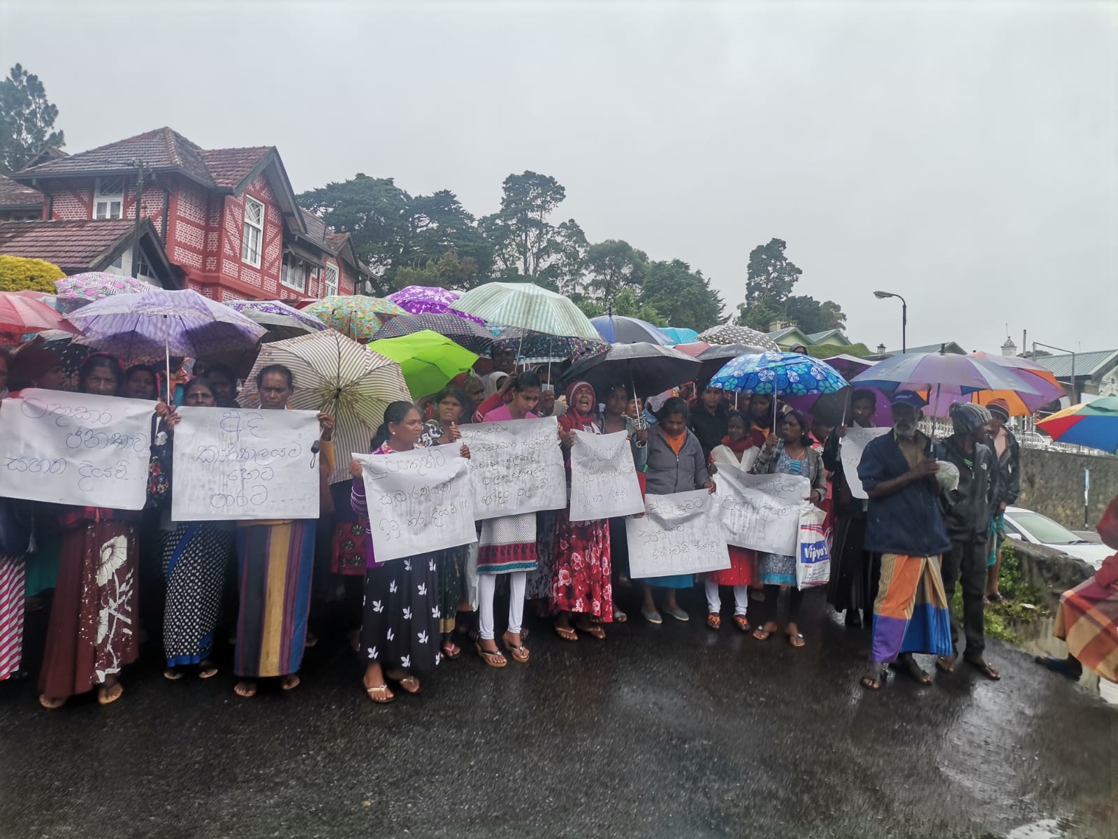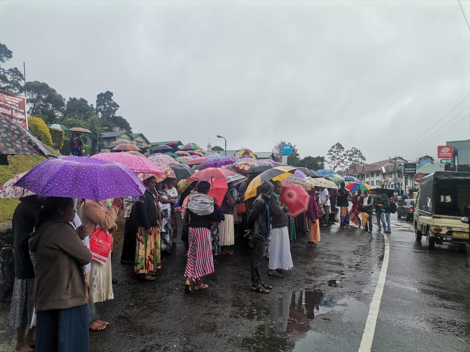 பலத்த மழைக்கு மத்தியில் நுவரெலியா பிரதேச செயலகத்திற்கு முன்னால் ஆரம்பித்த எதிர்ப்பு பேரணி நுவரெலியா எலிசபெத் மகாராணி வீதி, லோசன் வீதி, வழியாக நுவரெலியா பிரதான தபாலகம் முன் நின்று தமது எதிர்ப்பினை வெளிப்படுத்தி எதிர்ப்பு வாசகங்கள் கொண்ட சுலோகங்கள் ஏந்தியவாறு கோஷமிட்டுடவாறு சுமார் இரண்டு மணித்தியாலம் போராட்டத்தில் ஈடுபட்ட போராட்டகார்கள் பின்னர் அங்கிருந்து கலைந்து சென்றமை குறிப்பிடத்தக்கது .