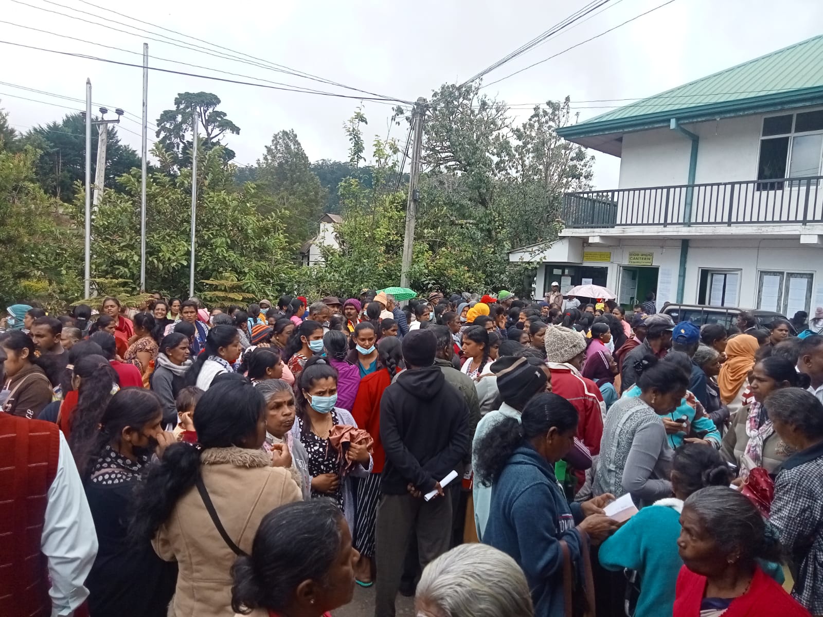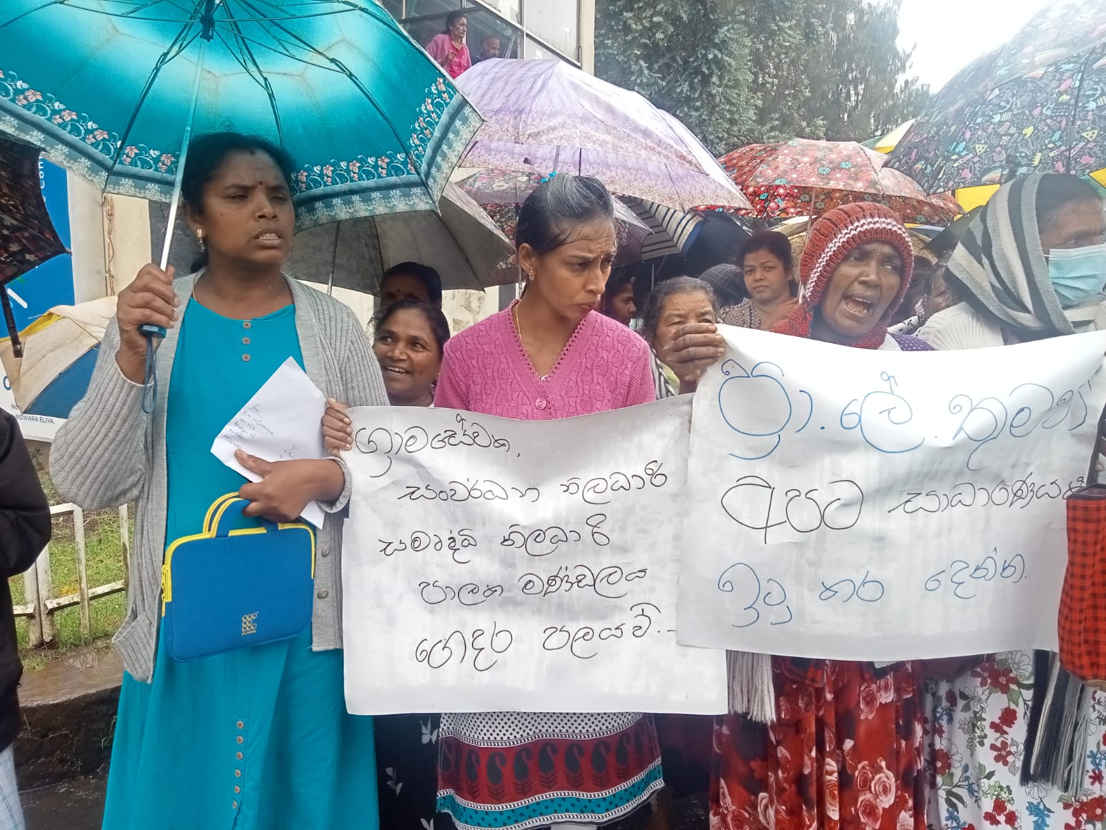 நுவரெலியாவில் புதிய சமூர்த்தி பயனாளிகள் தெரிவில் முறைகேடு பொதுமக்கள் பிரதேச செயலகம் முன் திரண்டு போராட்டம்.