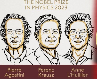 இதனை தொடர்ந்து இன்று இயற்பியல் பிரிவுக்கான நோபல் பரிசு பெற்றவர்களின் பெயர்கள் அறிவிக்கப்பட்டுள்ளன. அணுக்கள் மற்றும் மூலக்கூறுகளுக்குள் இருக்கும் எலக்ட்ரான்களின் உலகத்தை ஆராய்வதற்கான புதிய கருவிகளை கண்டறிந்ததற்காக 3 இயற்பியல் ஆராய்ச்சியாளர்களுக்கு நோபல் பரிசு அறிவிக்கப்பட்டுள்ளது.
