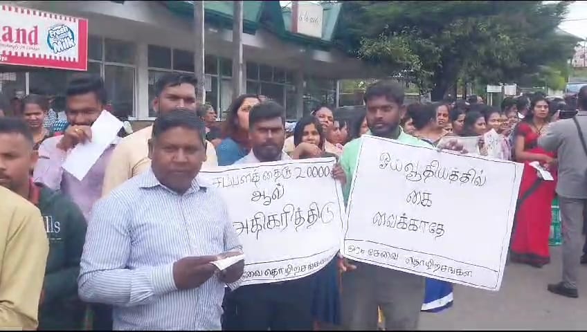 இலங்கை அரசாங்கத்தினால் முன்வைக்கப்படவுள்ள வரவு – செலவுத் திட்டத்தின் ஊடாக 20,000 ரூபா கொடுப்பனவு அல்லது சம்பள அதிகரிப்பை கோரி நாடாவிய ரீதியில் கவனயீர்ப்பு போராட்டத்தில் ஈடுபட்டு வருகின்றனர் இதற்கு ஆதரவாக நுவரெலியாவிலும் திங்கட்கிழமை (30) நண்பகல் நுவரெலியா மாவட்ட செயலகத்திற்கு முன்பாக போராட்டத்தில் ஈடுபட்டனர் .