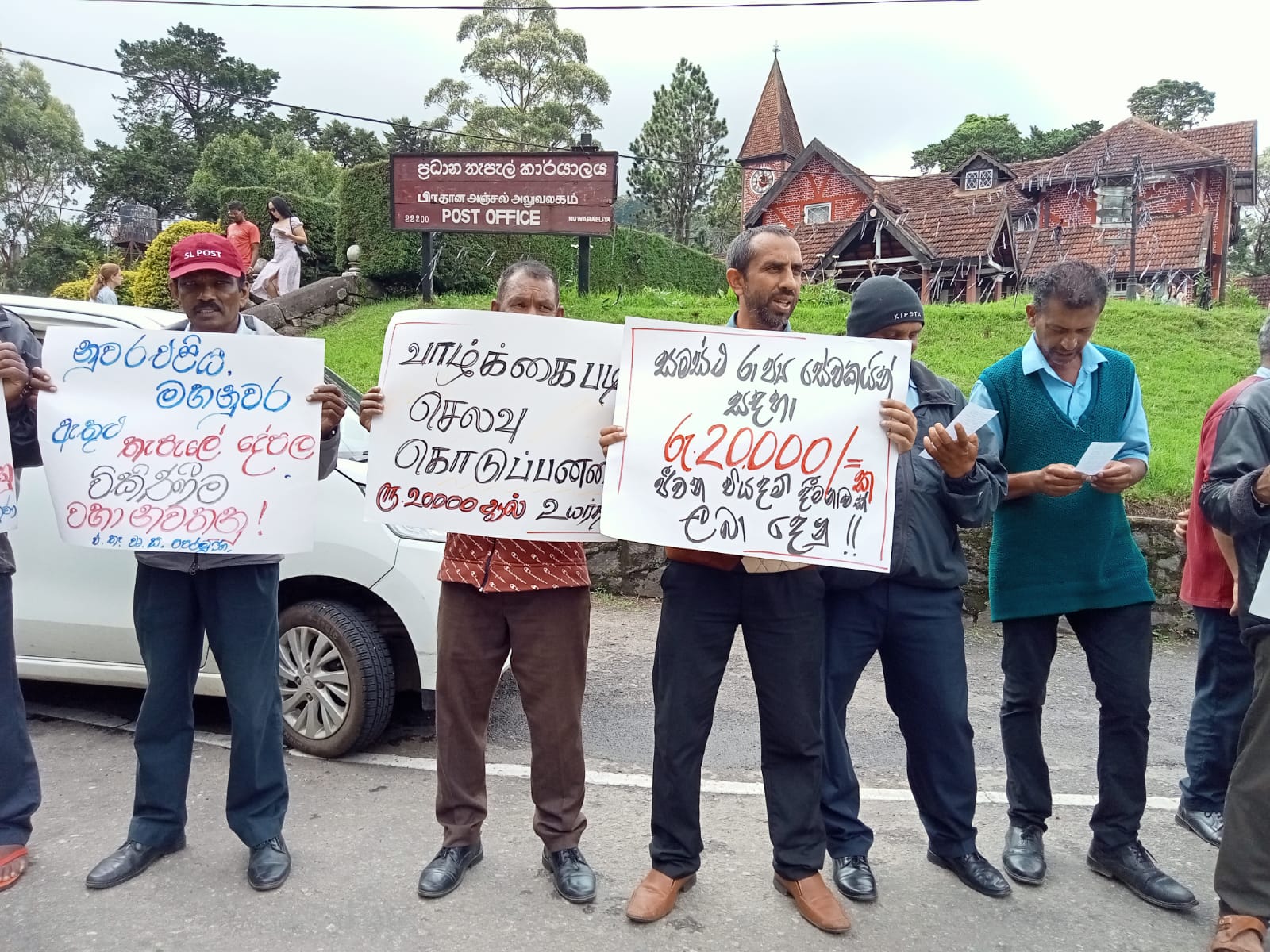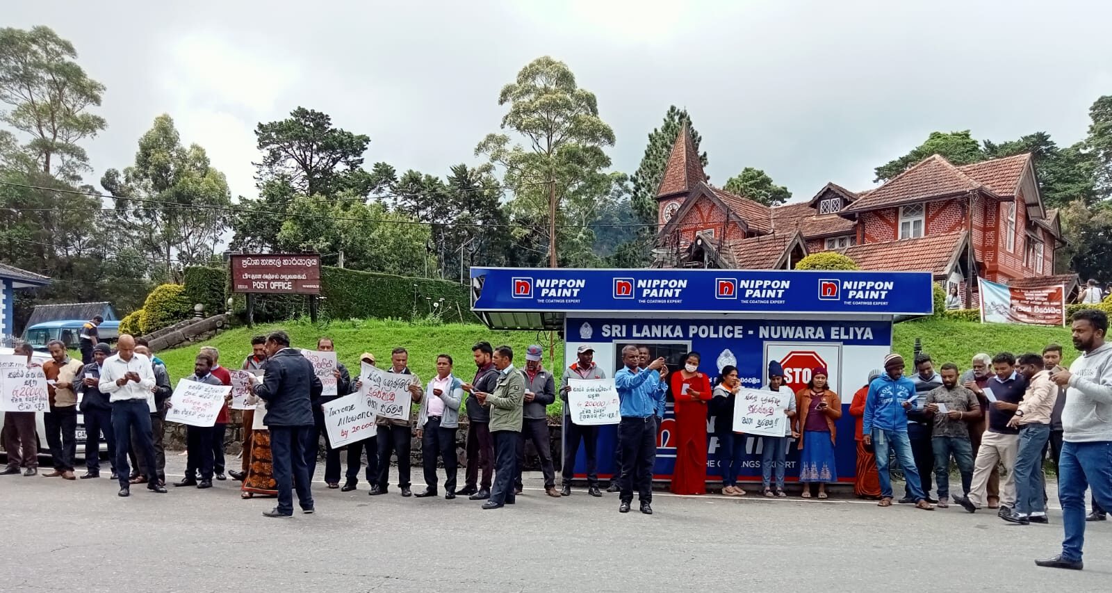 நுவரெலியாவில் ஆங்கிலேயரால் அமைக்கப்பட்ட பழமையான தபால் நிலையத்தை இந்தியாவின் தாஜ் சமுத்ரா ஹோட்டலுக்கு கைமாற்றுவதற்கு அராசாங்கம் எடுக்கப்பட்ட தீர்மானத்திற்கு எதிராக நுவரெலியா தபால் நிலையத்திற்கு முன்பாக எதிர்ப்பு ஆர்ப்பாட்டம் ஒன்றினை வியாழக்கிழமை (30) மதிய உணவு இடைவேளையின் போதே இவர்கள் போராட்டத்தில் ஈடுபட்டனர் .