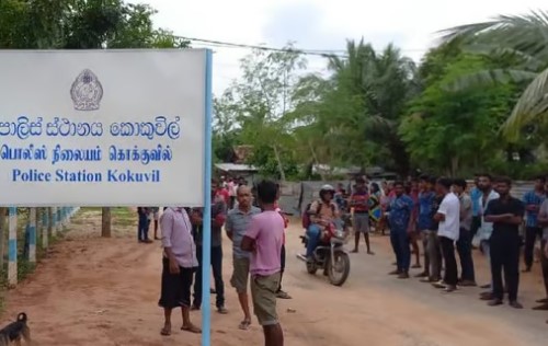 இந்த போராட்டத்தின்போது பொலிஸ் நிலையத்தின் நுழைவாயில் பூட்டப்பட்ட நிலையில் போராட்டம் நடாத்தப்பட்டது.