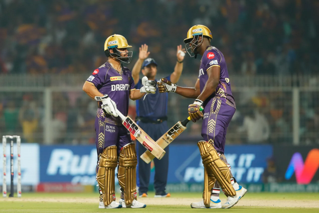 அவருடன் களமிறங்கிய எந்த வீரரும் நிதானத்துடன் விளையாடாமல் அடுத்தடுத்து விக்கெட்டை இழந்து தடுமாறினார். அதன் பின் 7-வது விக்கெட்டுக்கு களமிறங்கிய ரஸ்ஸல்லும், ரிங்கு சிங்கும் அதிரடியாக விளையாடினர். குறிப்பாக ரஸ்ஸல் ஆட்டத்தின் போக்கை மாற்றினார். இவர் 25 பந்துகளில் 65* ஓட்டங்கள் எடுத்து இறுதி வரை ஆட்டமிழக்காமல் இருந்தார். இவரது அதிரடி ஆட்டத்தால் கொல்கத்தா அணி 20 ஓவர் முடிவில் 7 விக்கெட் இழப்பிற்கு 208 ஓட்டங்கள் எடுத்தது.