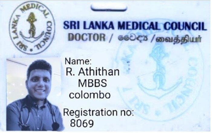 யாழ்ப்பாணம், சுன்னாகத்தைச் சேர்ந்த 29 வயதுடைய இராஜமார்க்கண்டன் ஆதித்தன் என்ற இளைஞனே கைது செய்யப்பட்டுள்ளார். இதேவேளை அதிசொகுசு கார் ஒன்றும், 15 பவுண் நகைகளும், 5 இலட்சம் ரூபா பணமும், 5 கைபேசிகளும் கைப்பற்றப்பட்டுள்ளன. இவர் தான் ஒரு மருத்துவர் என்பதற்குரிய போலி ஆவணங்களையும், பிரித்தானிய குடியுரிமை பெற்றதற்கான போலி கடவுச்சீட்டு உள்ளிட்ட பல ஆவணங்களையும் உருவாக்கியுள்ளார். அவற்றைக் கொண்டே அவர் மோசடிகளை மேற்கொண்டுள்ளார்.