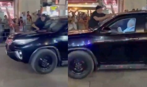 பிரதமர் மோடியின் கார் மிது வீசப்பட்ட செருப்பு