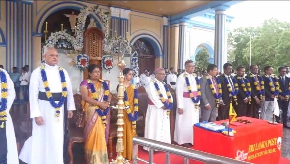 தபால் மா அதிபர் ரூவன் சத்குமாரவினால் விசேட முத்திரை மன்னார் மறைமாவட்ட ஆயர் கலாநிதி இம்மானுவேல் பெர்னாண்டோ ஆண்டகையிடம் வழங்கி வைக்கப்பட்டது.