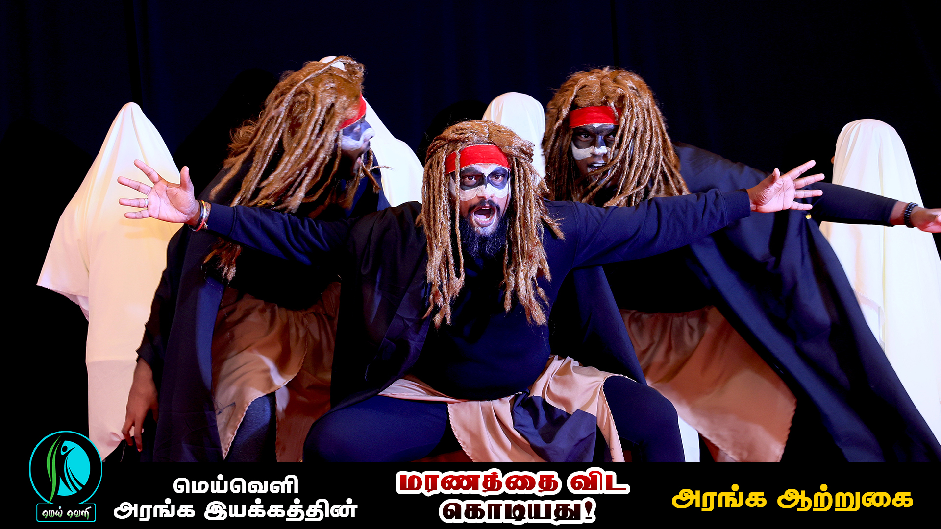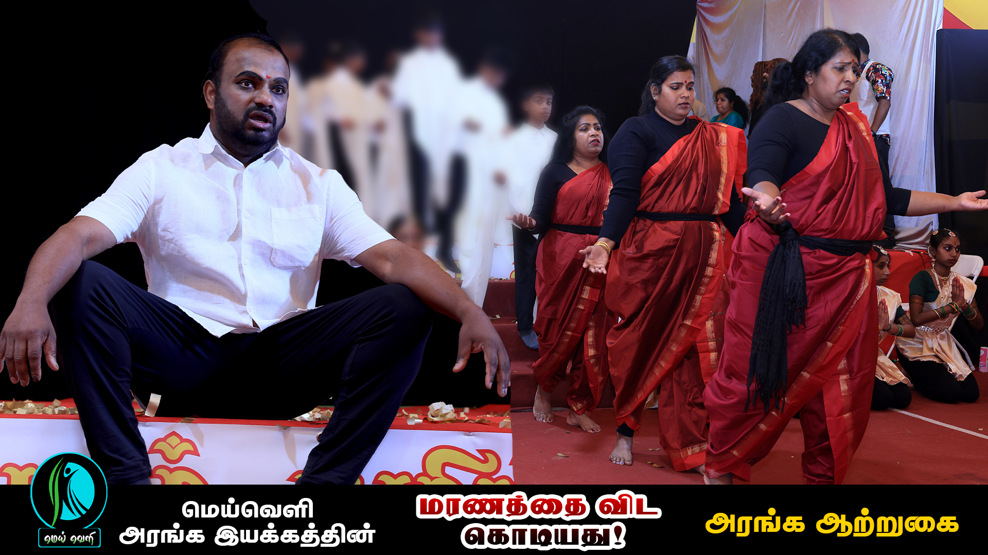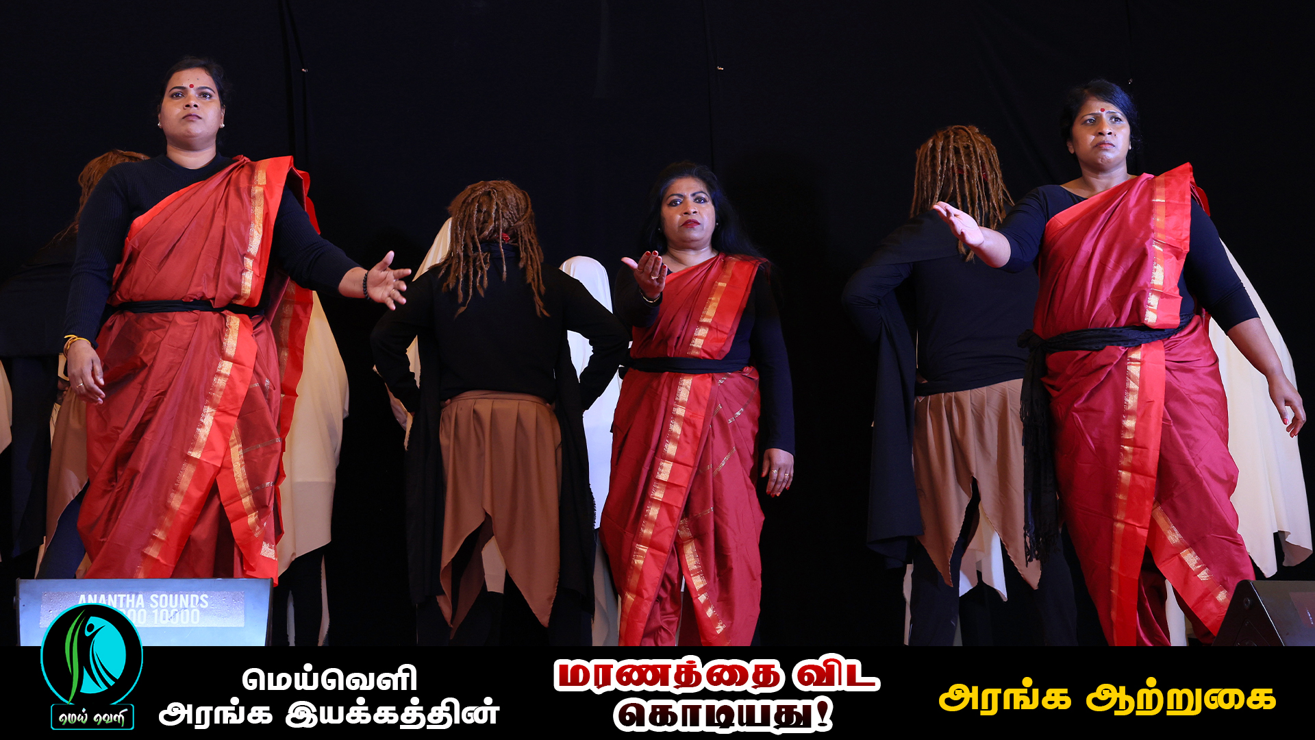 உலகத் தமிழ்ப் பண்பாட்டு இயக்கம் மற்றும் உலகத் தமிழர் வரலாற்று மையம் இணைந்து நடத்திய நான்காவது உலகத் தமிழாராய்ச்சி மாநாட்டு படுகொலையின் 50ஆவது ஆண்டு நினைவு நினைவேந்தல் நிகழ்வில் 30 June 2024 மேடையேற்றப்பட்ட மெய்வெளி அரங்க இயக்கத்தின் மரணத்தை விட கொடியது என்ற நாடகத்தைப் பார்த்தேன்.