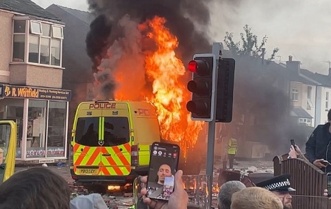 பிரித்தானியாவின் சவுத்போர்ட் பகுதியில் மூன்று சிறுமிகள் கொல்லப்பட்ட சம்பவத்திற்கு எதிராக மக்கள் எதிர்ப்புகளை வெளியிட்டு வருகின்றனர்.அந்தவகையில் சவுத்போர்ட் மசூதிக்கு வெளியே மக்களுக்கும் – பொலிஸ்அதிகாரிகளுக்கும் இடையில் முறுகல் நிலை ஏற்பட்டுள்ளது.இதில் பல பொலிஸ் அதிகாரிகள் காயமடைந்துள்ளதாக தெரிவிக்கப்படுகிறது.