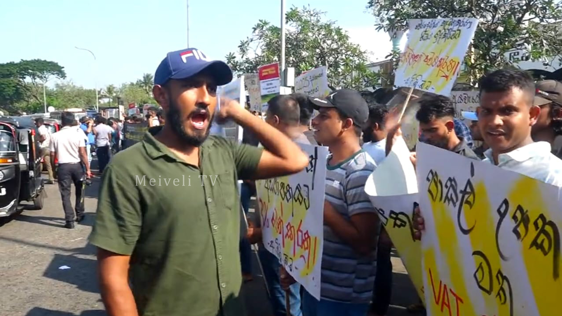 பெறுமதிசேர் வரிக்குறைப்பு உள்ளிட்ட பல்வேறு விடயங்களை முன்வைத்து அரசாங்கத்துக்கு எதிராக அனைத்துப் பல்கலைக்கழக மாணவர் ஒன்றியத்தினரால் இன்றைய தினம் (08) கொழும்பு, கோட்டை புகையிரத நிலையத்துக்கு முன்பாக கவனயீர்ப்புப் போராட்டம் ஒன்று மேற்கொள்ளப்பட்டது. மேலும் இப்போ போராட்டத்தை தொடர்ந்து ஊர்வலங்கள் செல்ல முடியாதவாறு பொலிசாரினால் நீதிமன்ற தடையுத்தரவு பெறப்பட்ட நிலையில் போராட்டக்காரர்கள் தொடர்ந்தும் கோட்டை புகையிரத நிலையத்திற்கு முன்னாள் கவனயீர்ப்புப் போராட்டத்தில் ஈடுபட்டனர்.