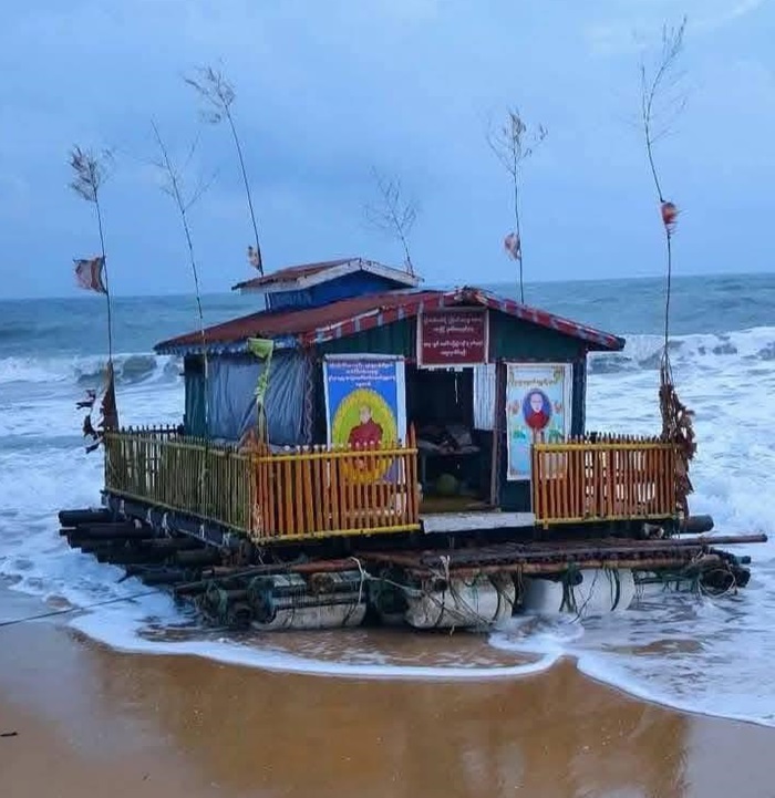 யாழ் நாகர்கோவில் பகுதியில் ஒதுங்கிய மிதக்கும் மர்ம வீடு.