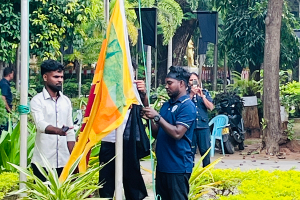 யாழ். பல்கலையில் தேசிய கொடி இறக்கப்பட்டு கறுப்புக்கொடி ஏற்றப்பட்டு போராட்டம்: வடகிழக்கில் வலுப்பெற்ற கறுப்புக் கொடிப் போராட்டம்.
