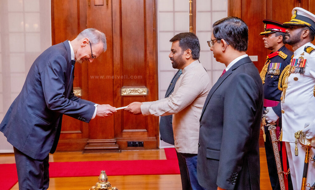 இலங்கைக்கான புதிதாக நியமிக்கப்பட்ட மூன்று வெளிநாட்டுத் தூதுவர்கள் இன்று (24) ஜனாதிபதி அலுவலகத்தில் ஜனாதிபதி அநுரகுமார திசாநாயக்கவிடம் தங்கள் நற்சான்றிதழ் பத்திரங்களை கையளித்தனர்.