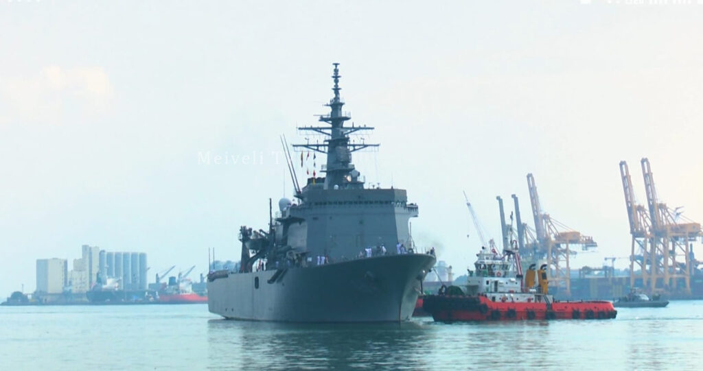 ஜப்பான் கடல்சார் தற்காப்புப் படைக்கு சொந்தமான BUNGO மற்றும் ETAJIMA என்ற கப்பல்கள் உத்தியோகபூர்வ விஜயமொன்றிற்காக (2025 ஏப்ரல் 01) கொழும்பு துறைமுகத்தை வந்தடைந்ததுடன், இலங்கை கடற்படையினர் கப்பலை கடற்படை மரபுகளுக்கு அமைவாக வரவேற்றனர்.