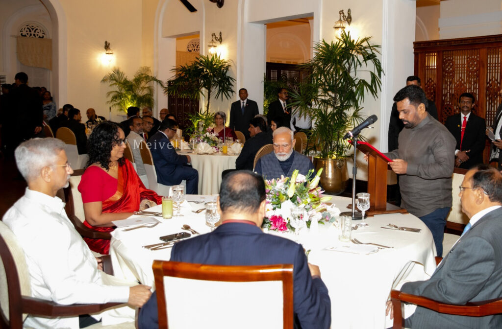 ஜனாதிபதி அநுரகுமார திசாநாயக்கவின் அழைப்பின் பேரில், இலங்கைக்கு அரச பயணம் மேற்கொண்டுள்ள இந்தியப் பிரதமர் ஸ்ரீ நரேந்திர மோடிக்கு, கொழும்பில் உள்ள ஜனாதிபதி மாளிகையில் நேற்று (05) இரவு ஜனாதிபதியினால் சிறப்பு இரவு விருந்து வழங்கப்பட்டது.