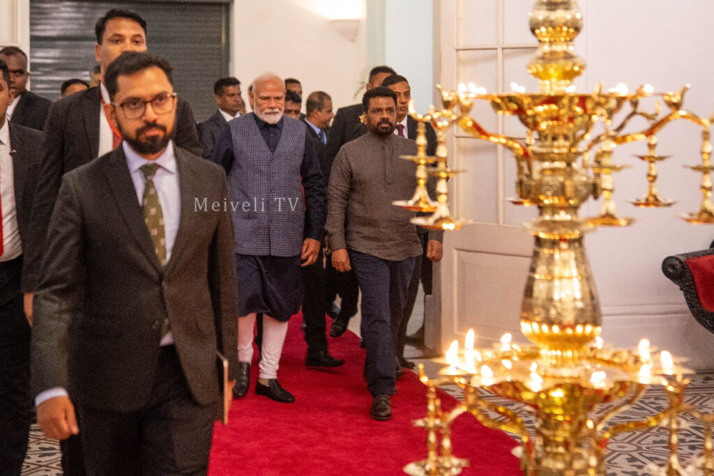 ஜனாதிபதி மாளிகைக்கு வருகை தந்த இந்தியப் பிரதமரை ஜனாதிபதி அநுர குமார திசாநாயக்க வரவேற்றார்.