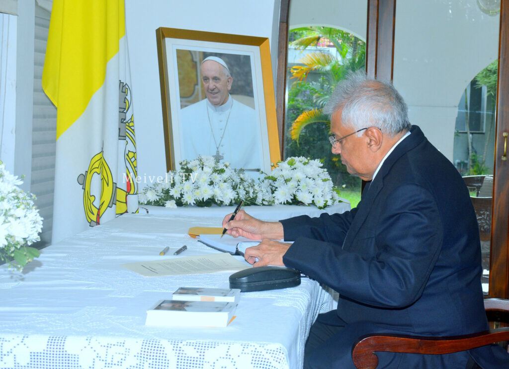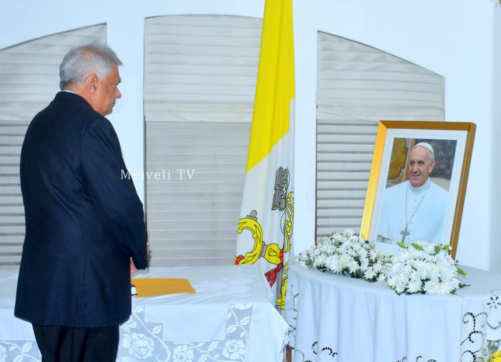 முன்னாள் ஜனாதிபதி ரணில் விக்ரமசிங்க, இலங்கையில் உள்ள வத்திக்கான் தூதரகத்திற்குச் சென்று, புனித பாப்பரசர் பிரான்சிஸ் மறைவுக்கு இரங்கல் தெரிவித்தார்.