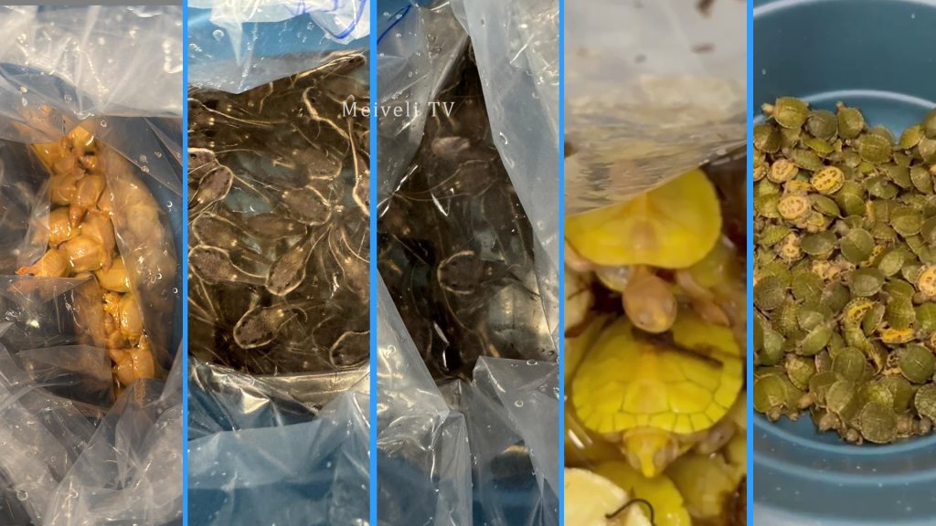 சந்தேக நபர்களிடமிருந்து அரிய வகை ஆமைகள், நத்தைகள், மீன்கள், கடல் நத்தைகள், தவளைகள், கடலாமைகள் உள்ளிட்ட பல உயிரிழனங்கள் கைப்பற்றப்பட்டுள்ளன.