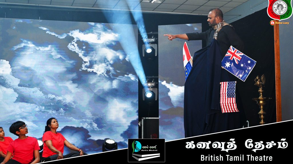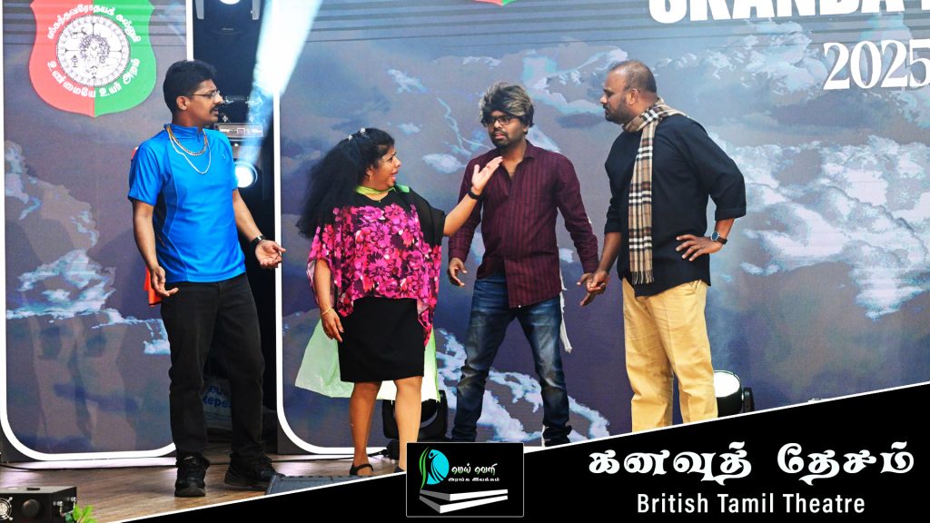 மேடைத் திரையை அடிக்கடி பூட்டித் திறக்கிற நாடகங்களை இங்க கனக்க நான் பார்த்திருக்கிறேன். இரண்டு காட்சிகளுக்கு இடையே நீண்ட நேரங்கள் காத்திருக்க வேண்டிய நாடகங்களைப் பார்த்திருக்கிறென். கட்டுக் கட்டான வசனங்களைப் பேசிப் பேசி மேடையேற்றிய நாடகங்களில் கடுப்பாகிப்போன சந்தர்ப்பங்கள் எனக்கு இருந்திருக்கின்றன. பல இடங்களில் நாடகம் போடும் தருணத்தை எனக்கு ஒரு இடைவேளையாக எடுத்துக்கொண்டு நான் வெளியேயும் உள்ளேயும் போய் வருவதாக இருந்திருக்கிறேன். லண்டனில் நாடகங்கள் எண்டால் இப்பிடித்தானாக்கும் என்டு நினைச்ச எனக்கு இப்பிடி ஒரு நாடகத்தைப் பார்த்தது பெரிய ஆச்சரியமாக இருக்குது.