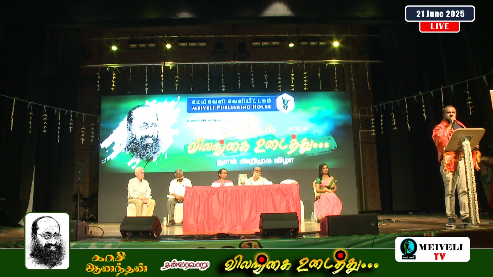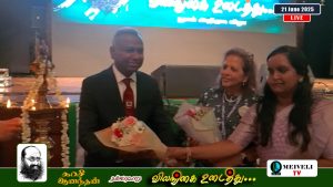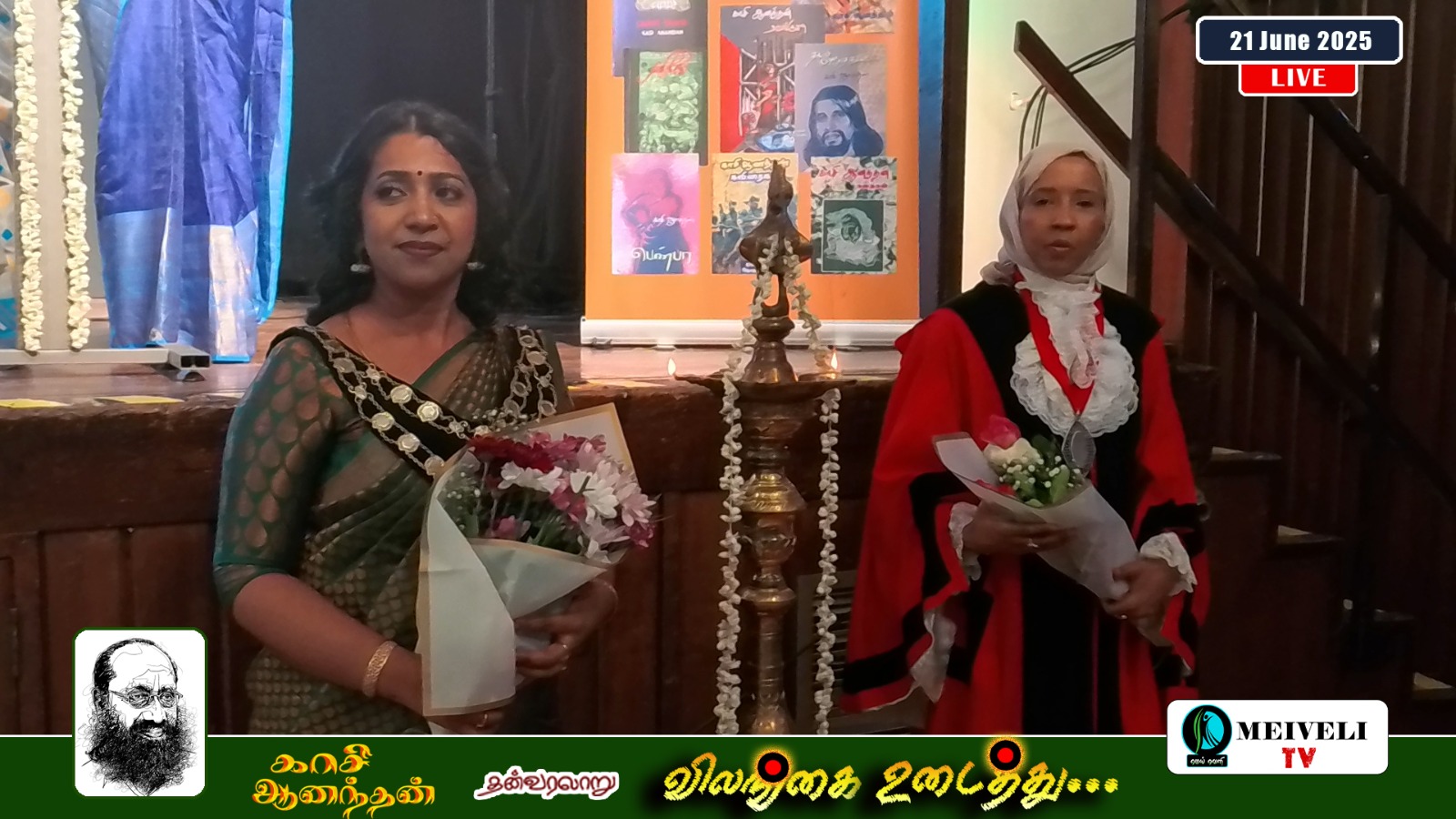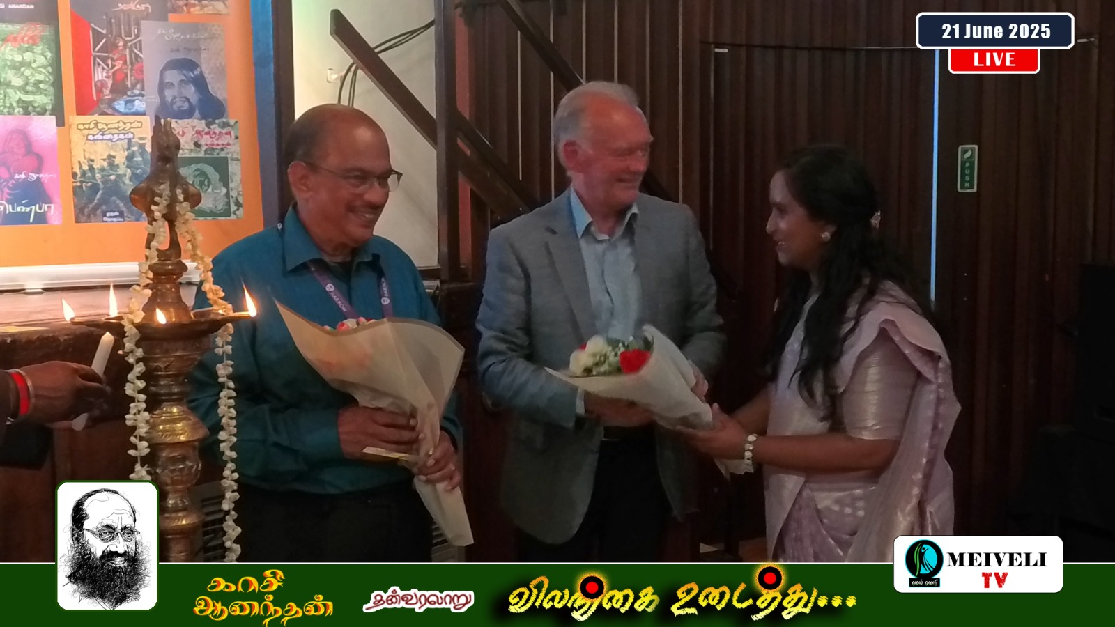 விழாவை தலைமை தாங்கிய ஊடகவியலாளரும் மெய்வெளி இயக்குனர்களில் ஒருவருமான திருமதி பிரேமலதா சாம் பிரதீபன் அவர்களின் வரவேற்பு உரையை தொடர்ந்து, சிறப்பு அதிதிகளாக வந்திருந்த போற்றுதலுக்குரிய மாநகர முதல்வியாகிய சர்மிளா சிவராஜா மற்றும் போற்றுதலுக்குரிய பிரதி மாநகர முதல்வியாகிய படுமா மொகமெட் ஆகியோரின் வாழ்த்து உரைகள் இடம்பெற்றன.