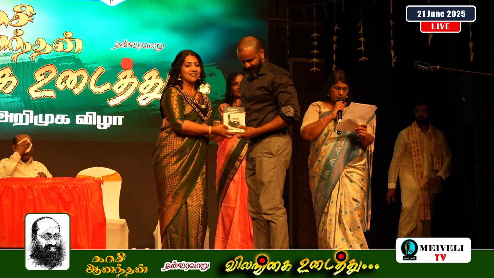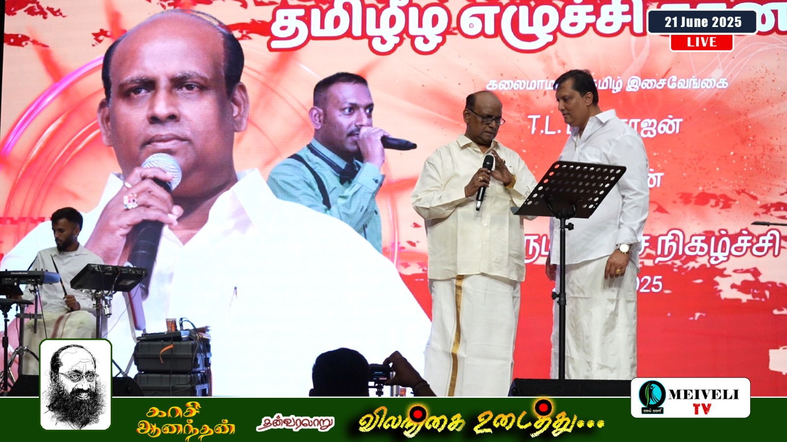 தமிழ் ஆசிரியர், கவிஞர், JR Print அச்சக உரிமையாளர் என பல் முகம் கொண்டவரான திரு பால ரவி அவர்கள் உணர்ச்சிக் கவிஞர் காசி ஆனந்தன் அவர்களின் சாதனைகளை வியந்து கவிதை ஒன்றை வழங்கிதை அடுத்து விசேட விருந்தினராகிய கலைமாமணி தமிழ்இசை வேங்கை T L மகாராஜன் அவர்களின் சிறப்புரை இடம் பெற்றது.