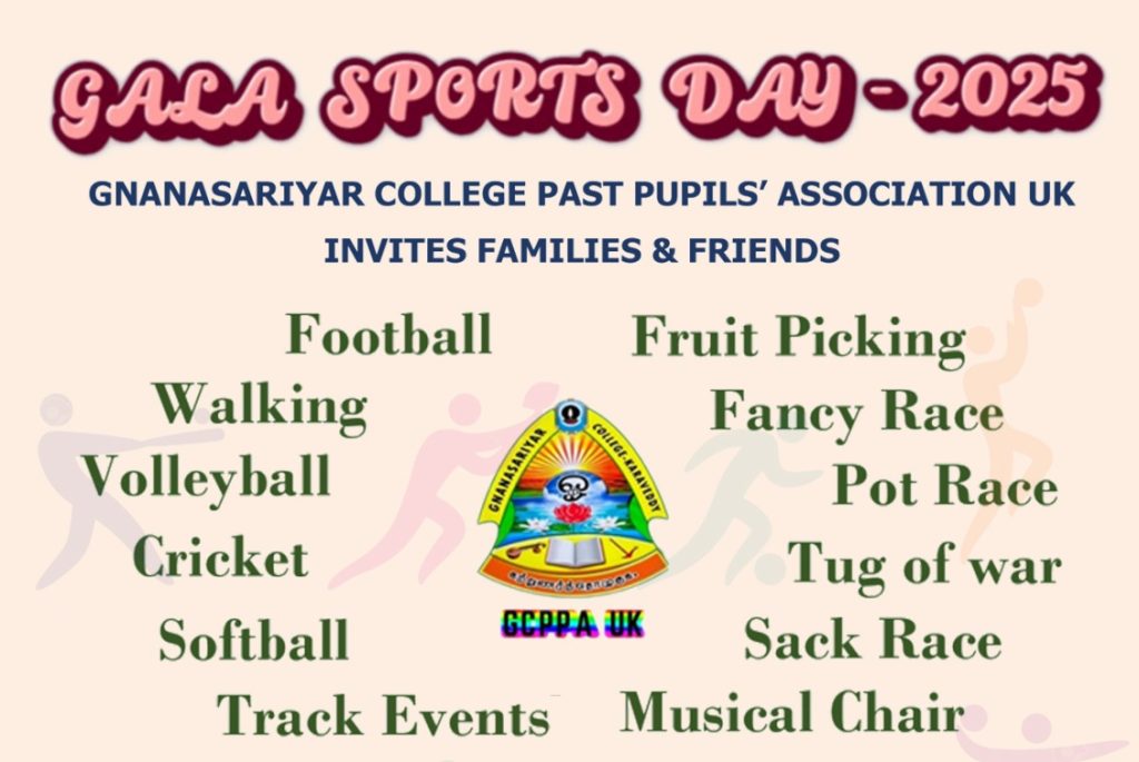 ஐக்கிய இராச்சியத்தில் வாழும் ஞானசாரியர் கல்லூரி, கரவெட்டியின் பழைய மாணவர்களால் ஒருங்கிணைக்கப்படும் ‘2025 கோலாகல கோடைவிழா’ எதிர்வரும் ஜூலை 13ஆம் தேதி கிழக்கு லண்டனில் உள்ள Valentines Park, Redbridge, East London என்ற மகவரியில் மிகுந்த உற்சாகத்துடன்இ குடும்பமுழுவதும் மகிழ்வுடன் கழிக்கத்தக்க ஒரு நாள் நிகழ்வாக நடைபெற உள்ளது.