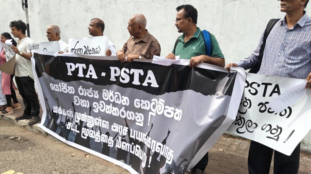 இலங்கையில் முன்மொழியப்பட்டுள்ள புதிய பயங்கரவாத எதிர்ப்புச் சட்டமூலத்திற்கு (PSTA) எதிராகவும், தற்போது நடைமுறையிலுள்ள பயங்கரவாதத் தடைச் சட்டத்தை (PTA) முழுமையாக நீக்கக் கோரியும் கொழும்பில் உள்ள நீதியமைச்சிற்கு முன்பாகப் பாரிய எதிர்ப்புப் போராட்டம் ஒன்று முன்னெடுக்கப்பட்டது.