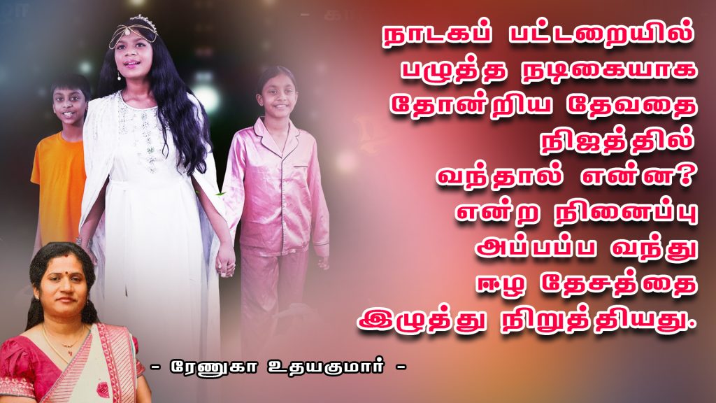 நாடகப் பட்டறையில் பழுத்த நடிகையாக தோன்றிய தேவதை நிஜத்தில் வந்தால் என்ன என்ற நினைப்பு அப்பப்ப வந்து ஈழ தேசத்தை இழுத்து நிறுத்தியது.