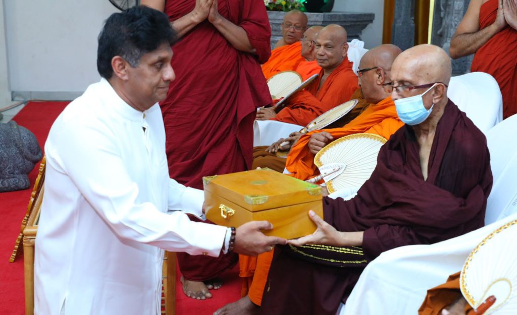 ஸ்ரீ ஜயவர்தனபுர ஜயசேகராம விகாரையில் இன்று இடம்பெற்ற ரஜவத்தே வப்ப தேரருக்கு மியன்மாரின் அக்கமஹா சத்தம்ம ஜோதிக தஜ கௌரவ நாமம் வழங்கும் நிகழ்வில் கலந்து கொண்டு கொண்டு உரையாற்றும் போதே எதிர்க்கட்சித் தலைவர் சஜித் பிரேமதாச தெரிவித்தார்.