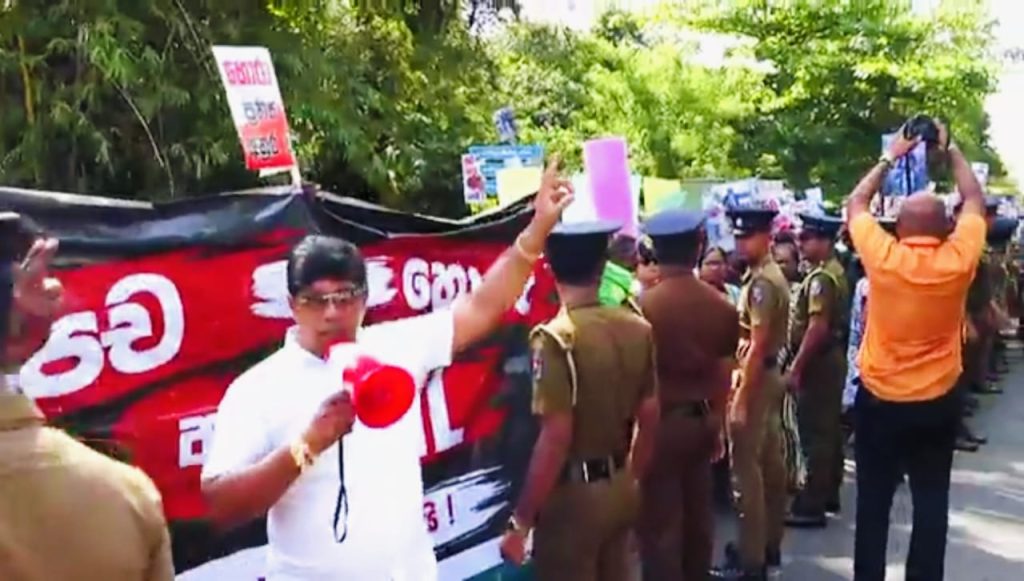 ஒன்றிணைந்த எதிர்க்கட்சியின் பாராளுமன்ற உறுப்பினர்கள் மற்றும் பொதுமக்களின் பெரும் பங்கேற்புடன் நடைபெற்ற இந்த ஆர்ப்பாட்டத்தினால் அப்பகுதியில் கடும் பதற்ற நிலை ஏற்பட்டதுடன், போக்குவரத்தும் முழுமையாகப் பாதிக்கப்பட்டது.