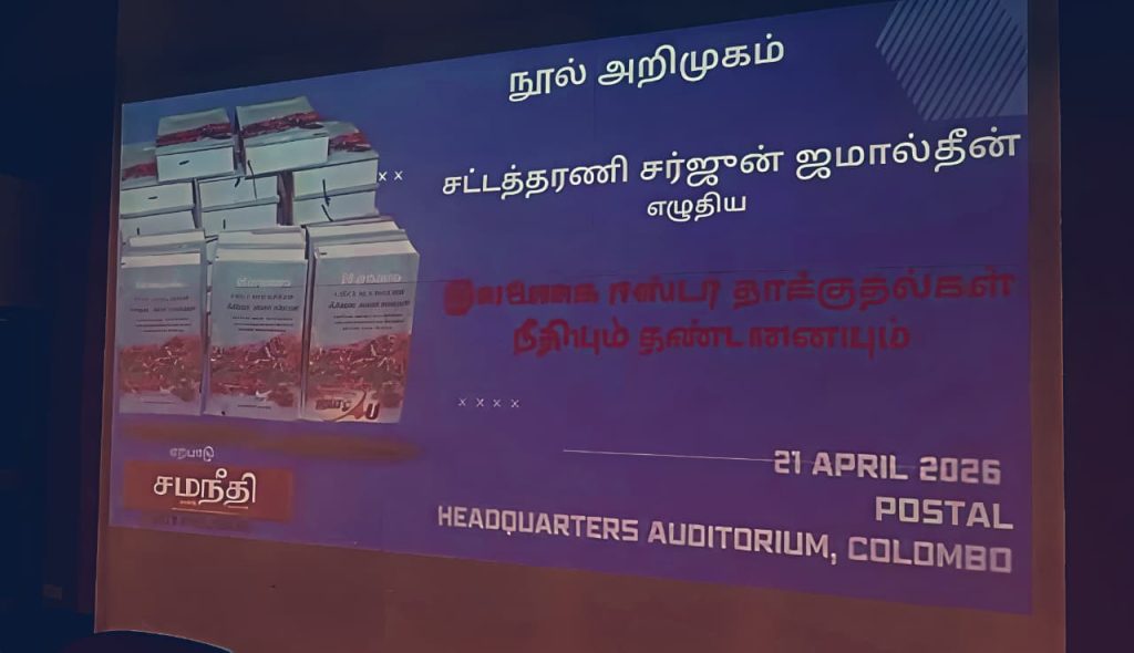 சட்டத்தரணி சர்ஜூன் ஜமால்தீன் எழுதிய “இலங்கை ஈஸ்டர் தாக்குதல்கள்: நீதியும் தண்டனையும்” நூல் அறிமுக நிகழ்வு நேற்றைய தினம் (21) கொழும்பில் நடைபெற்றது.